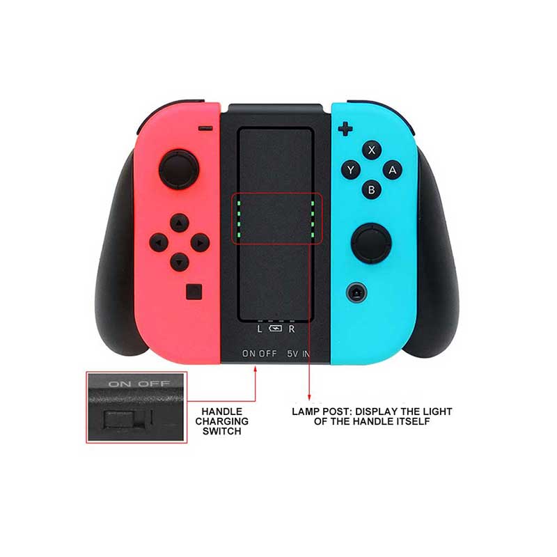 Lost your original joy-con holder? Maybe you just want an upgrade or more juice to keep those gaming hours long and enjoyable, then this is perfect! Holds your controllers and charges them almost up to two full charges each controller! (Each Stock Joycon-Controller is 525mAh)
